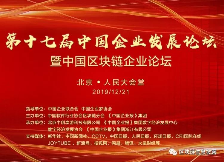 由中国软件行业协会区块链分会、《中国企业报》集团联合主办的第十七届中国企业发展论坛暨中国区块链企业峰会于12月21日在北京人民大会堂举办