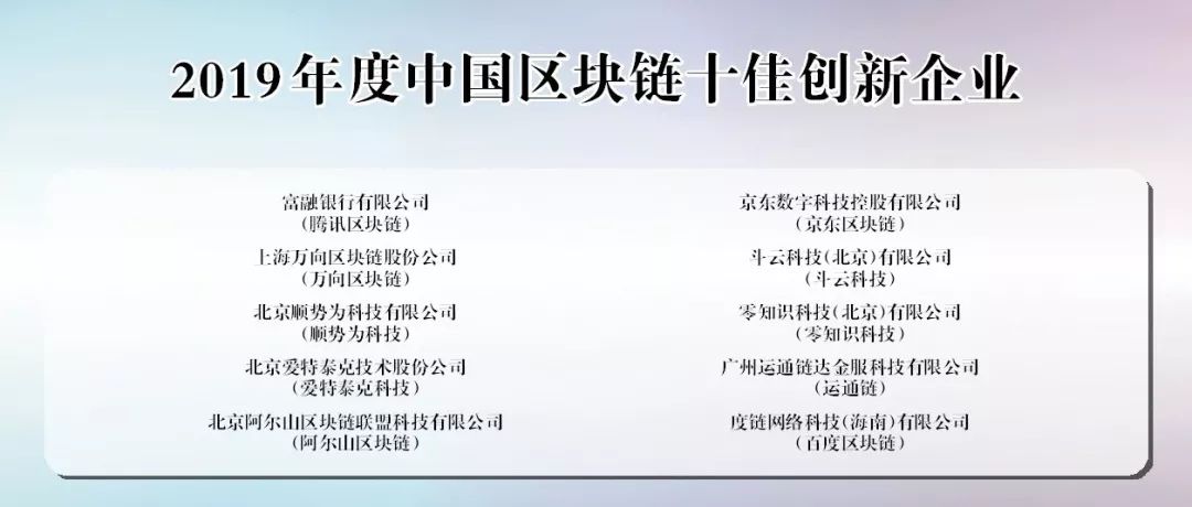 本次论坛发布了《2019年度创新力企业》以及《2019年度成长力企业》等系列榜单。腾讯富融银行、斗云科技与爱特泰克等10家区块链创新企业获得了“2019年度中国区块链十佳创新企业”称号,维港区块链科技和艾欧科技、中创享游分别获得“2019年度成长力企业”和“2019年度创新力企业”。
