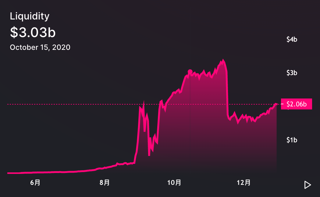 9月17日,Uniswap宣布启动流动性挖矿计划,并发行治理代币UNI,同时向早期用户进行代币空投,引发巨大讨论。上线交易之后,UNI单日上涨5倍,后续交易日最高触及8.6美元,并同步带动Uniswap锁仓量重回上涨通道,由9月中旬13亿美元,上升至10月中旬近30亿美元,资金规模翻倍。
