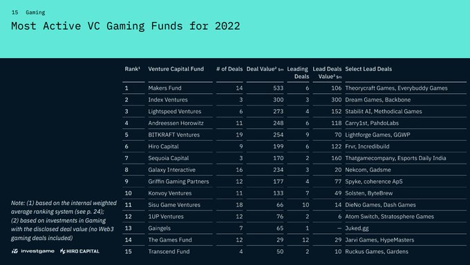 2022年数据中,最为活跃的五个风投机构分别为Makers Fund, Index Fund, Lightspeed Ventures, A16Z, 以及BITKRAFT