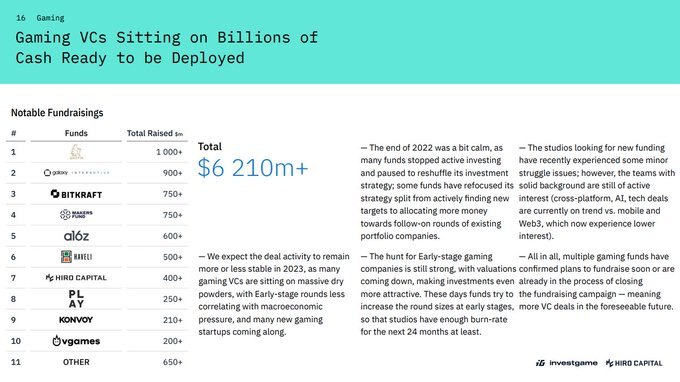 因为疫情中的资本热潮,出现了很多新成立的游戏基金而现有基金也有许多设立了新的游戏专项基金,市场中持资本等待投资机会的总额有62.1亿美元。大多数基金仍然在积极寻找适合他们的早期游戏项目。