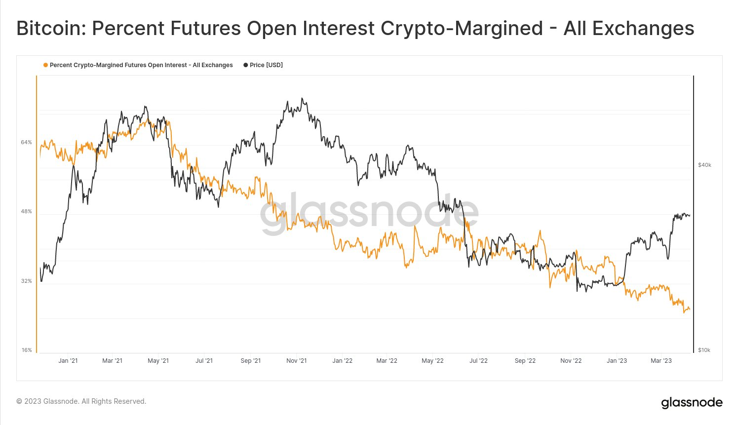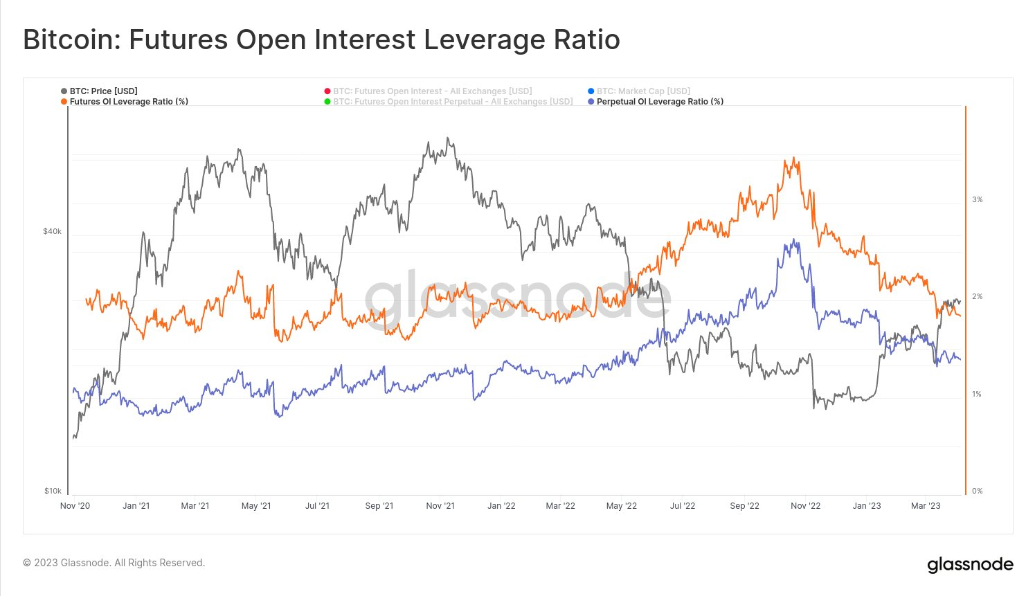 未平仓量相对于市值和交易所现货余额呈下降趋势。代币保证金也是如此。