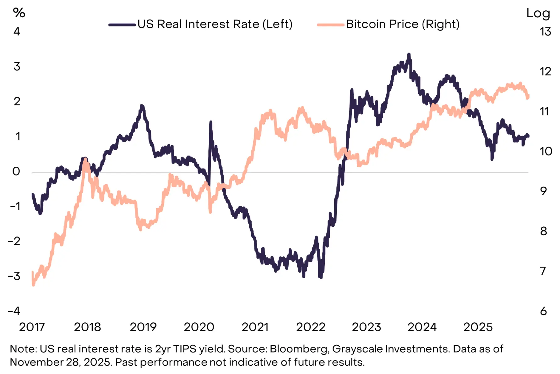 尽管前景存在不确定性,但我们认为四年周期论将被证明是错误的,比特币价格明年有望创下历史新高。原因如下:首先,与以往周期不同,本轮牛市中并未出现可能预示超涨的抛物线式价格上涨(见图 3);其次,比特币的市场结构已发生变化,新增资金主要通过交易所交易产品(ETP)和加密资产财库(DAT)流入,而非散户;最后,如下文所述,整体宏观市场环境对比特币仍然有利。