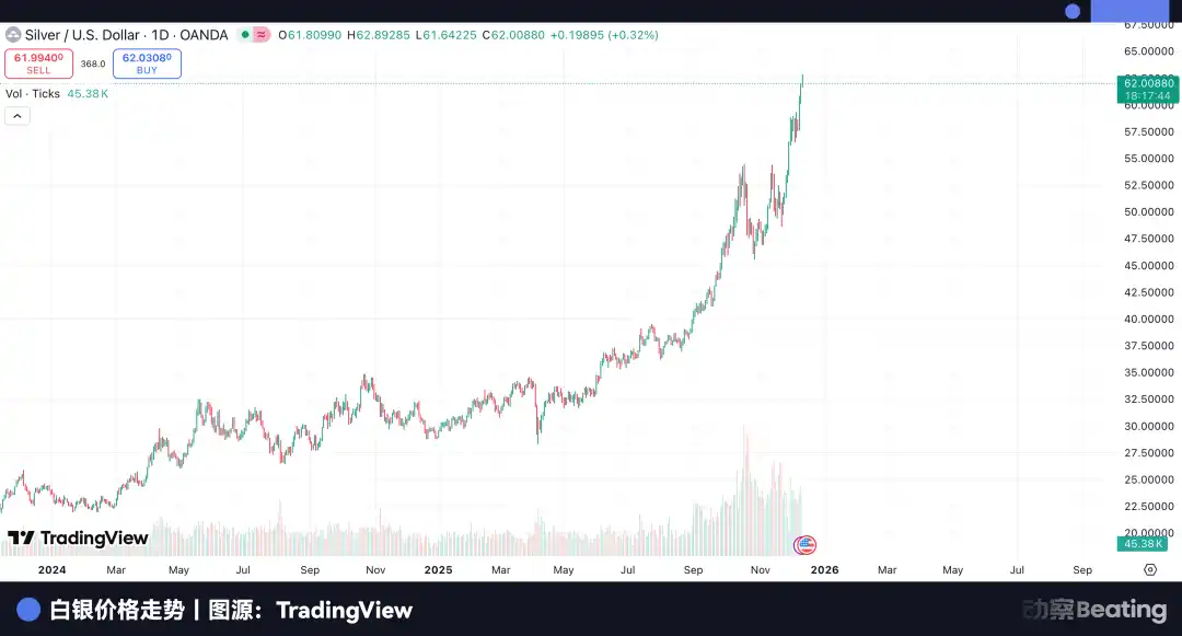 市场八卦从来不少,有传言称近期白银价格从 30 美元向 60 美元的狂飙,幕后推手正是摩根大通自己。这样的说法当然没有证据,却足够说明一件事,在很多人心里,它已经从做空纸白银的操盘手,变成了实物资产的最大多头。