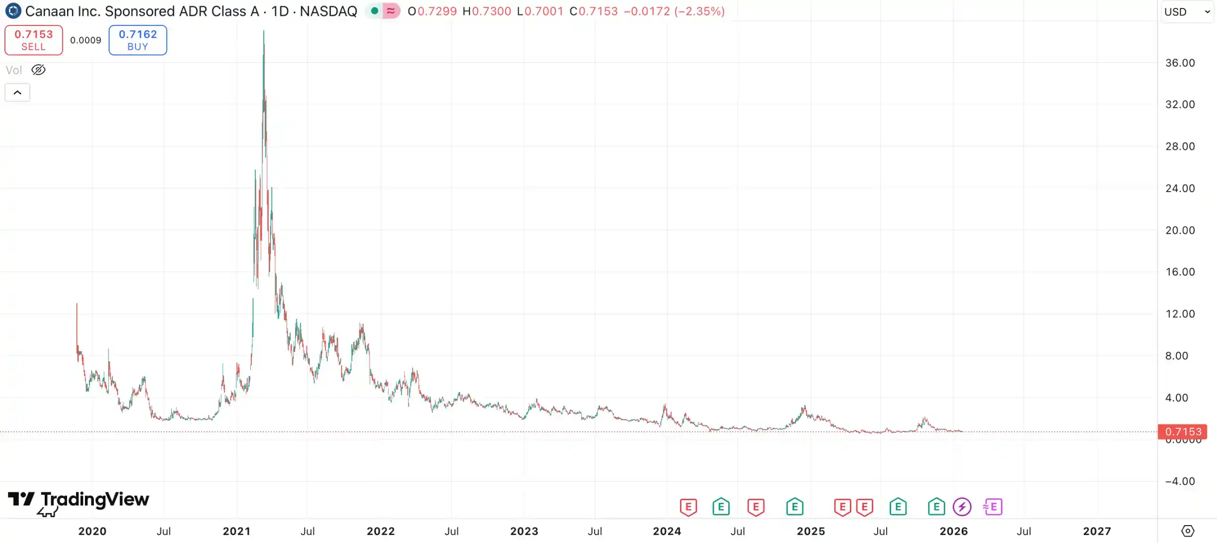 嘉楠科技于 2019 年 11 月在纳斯达克上市,成为全球首家完成 IPO 的纯区块链概念公司。上市后,嘉楠科技的股价在超过 1 年的时间里都处于破发状态,但随着加密货币牛市的到来,其股价从 2020 年底开始持续回暖,并在 2021 年 3 月创下近 40 美元的历史最高价,市值超过了 50 亿美元。