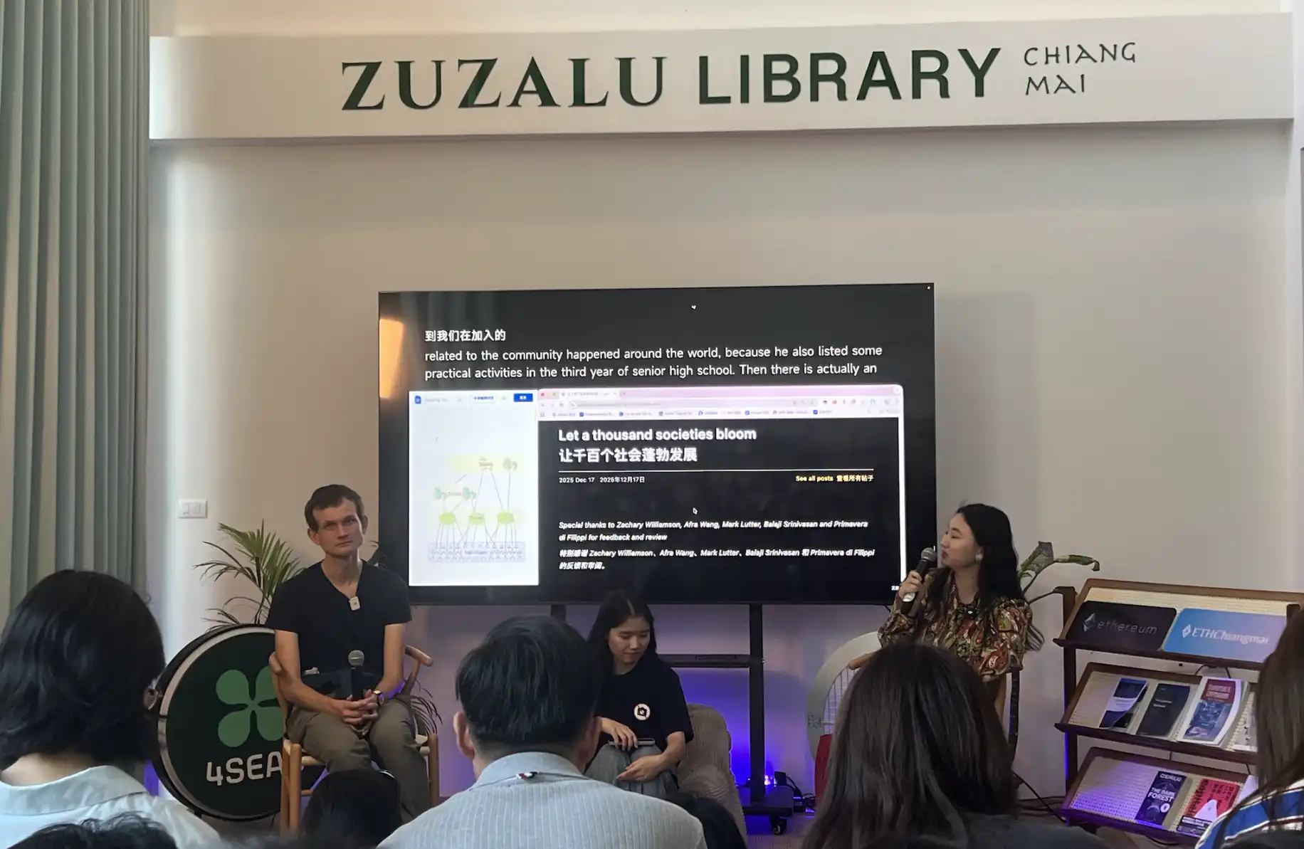Vitalik在清迈与作者深度对话,反思以太坊技术成功但应用层迷失的现状,指出SocialFi、预测市场等方向存在激励扭曲与社会价值缺失问题;强调预言机安全风险、去中心化稳定币创新必要性,并探讨AI时代以太坊作为‘AI银行账户’和信任基础设施的角色,呼吁构建真正具备社会意义的去中心化应用。