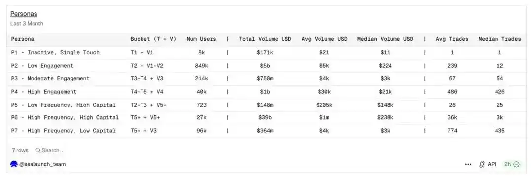 说明:本文全部数据来源于 Dune 数据看板,分析周期覆盖近三个月钱包级全量行为;用户画像依据交易频次分级(T1–T7)与交易金额分级(V1–V7)交叉划定,金额统计单位为美元。