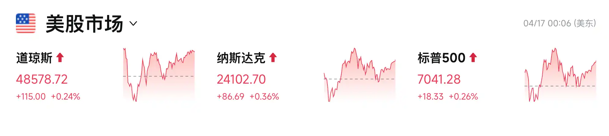 然而,海湾阿拉伯国家和欧洲领导人普遍认为,美伊和平协议的达成可能需要约六个月时间。 纳斯达克指数连续12日上涨,再次创历史新高,收于24102.70点,涨幅为0.36%,追平了自2009年以来的最长连涨记录。与此同时,道琼斯指数收于48578.72点(+0.24%),标普500指数收于7041.28点(+0.26%)并录得2020年4月以来最强的10日涨幅(+9.8%),连续2日刷新历史新高。