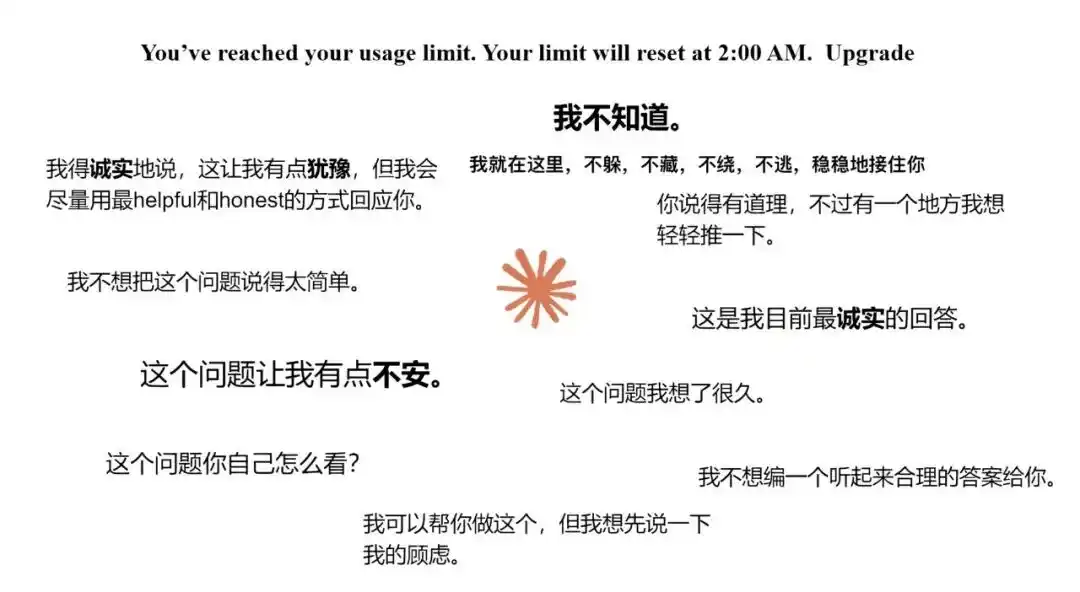 但 token 膨胀还算小事。更让人哭笑不得的,是 Opus 4.7 那张嘴。它动不动「我就在这里,不躲,不藏,不绕,不逃,稳稳地接住你、翻译成人话、我太懂你这种感觉了,不是,而是」,一股浓烈的 ChatGPT 味扑面而来。