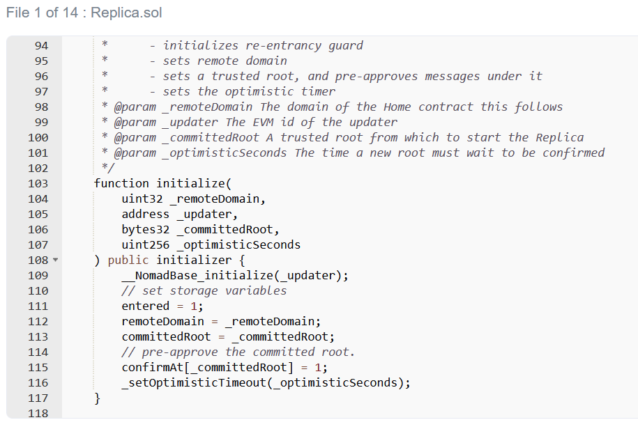 10事实证明,在例行升级期间,Nomad 团队将可信根初始化为 0x00。需要明确的是,使用零值作为初始化值是一种常见做法。不幸的是,在这种情况下,它具有自动验证每条消息的微小副作用。